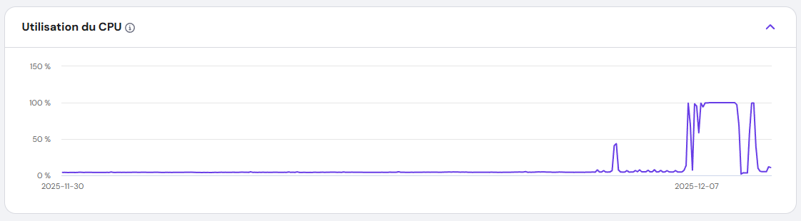 I rubbed my eyes, assuming it was a false alarm. But when I logged into my dashboard, the CPU usage graph told a different story: a flat line at 100%, stretching back over an hour. My VPS, which usually idled at a quiet 4%, was now screaming under full load.